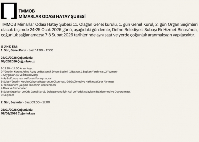 TMMOB Mimarlar Odası Hatay Şubesi 11. Olağan Genel Kurul İlanı